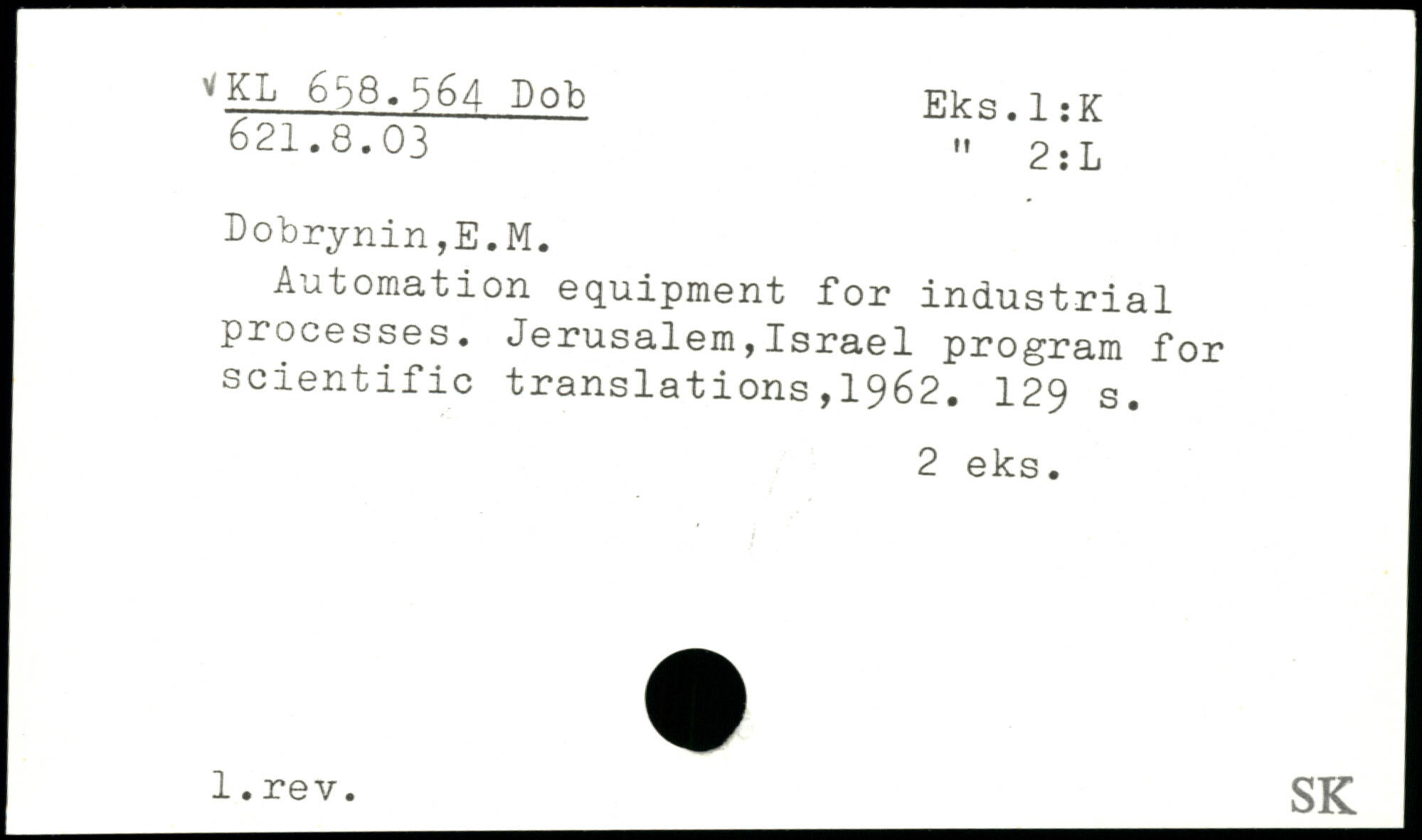 Automation equipment for industrial processes. Jerusalem,Israel program for scientific translations,1962.