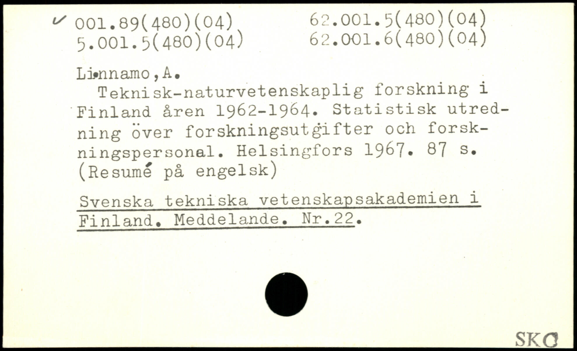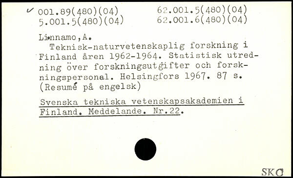 Teknisk-naturvetenskaplig forskning i Finland åren 1962-1964. Statistisk utredning over forskningsutgifter och forskningspersonal. Helsingfors 19&7.