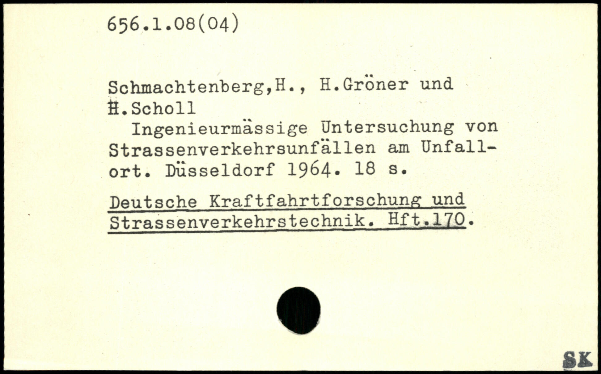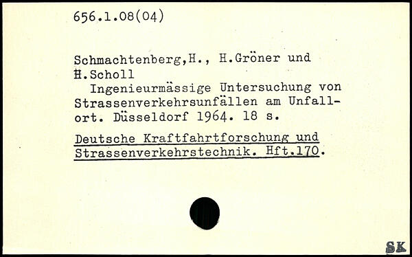Ingenieurmässige Untersuchung von Strassenverkehrsunfallen am Unfallort. Düsseldorf 1964-