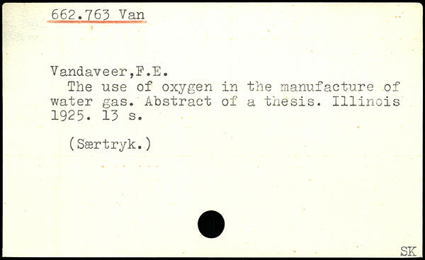 The use of oxygen in the manufacture of water gas. Abstract of a thesis. 1111nois 1925.