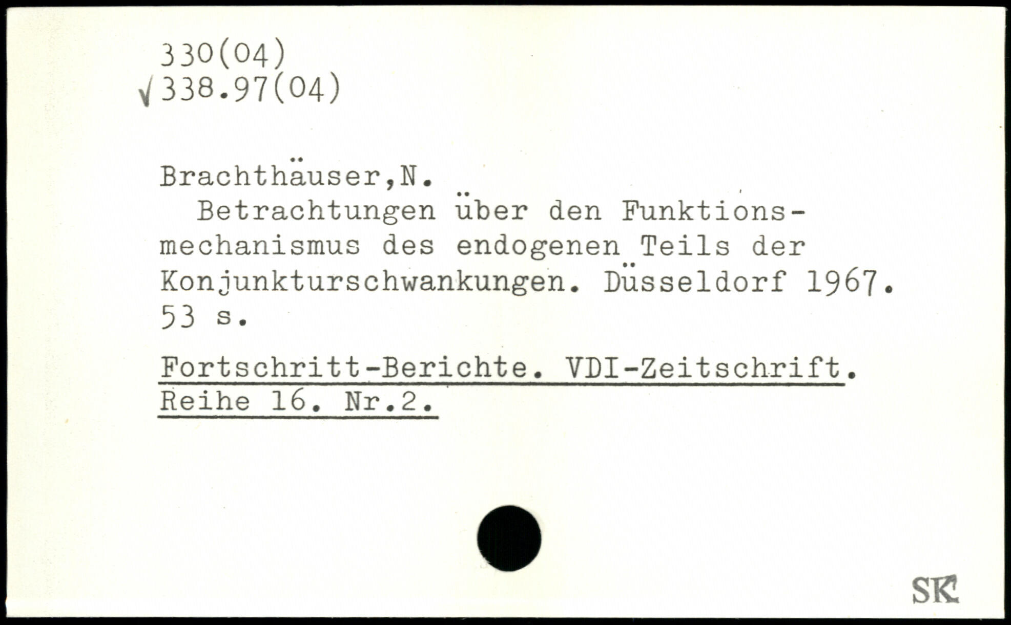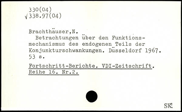 Betrachtungen über den Funktions-mechanismus des endogenen Teils der Konjunkturschwankungen. Düsseldorf 1967-