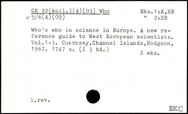 Who’s who in science in Europe. A new reference guide to West European scientists.