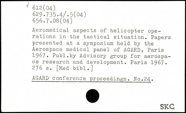 Aeromedical aspects of helicopter operations in the tactical situation. Papers presented at a symposium held hy the Aerospace medical panel of AGARD