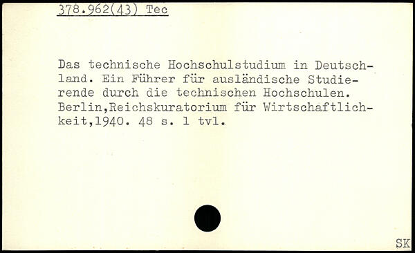 Das technische Hochschulstudium in Deutschland. Ein Führer für ausländische Studierende durch die technischen Hochschulen.