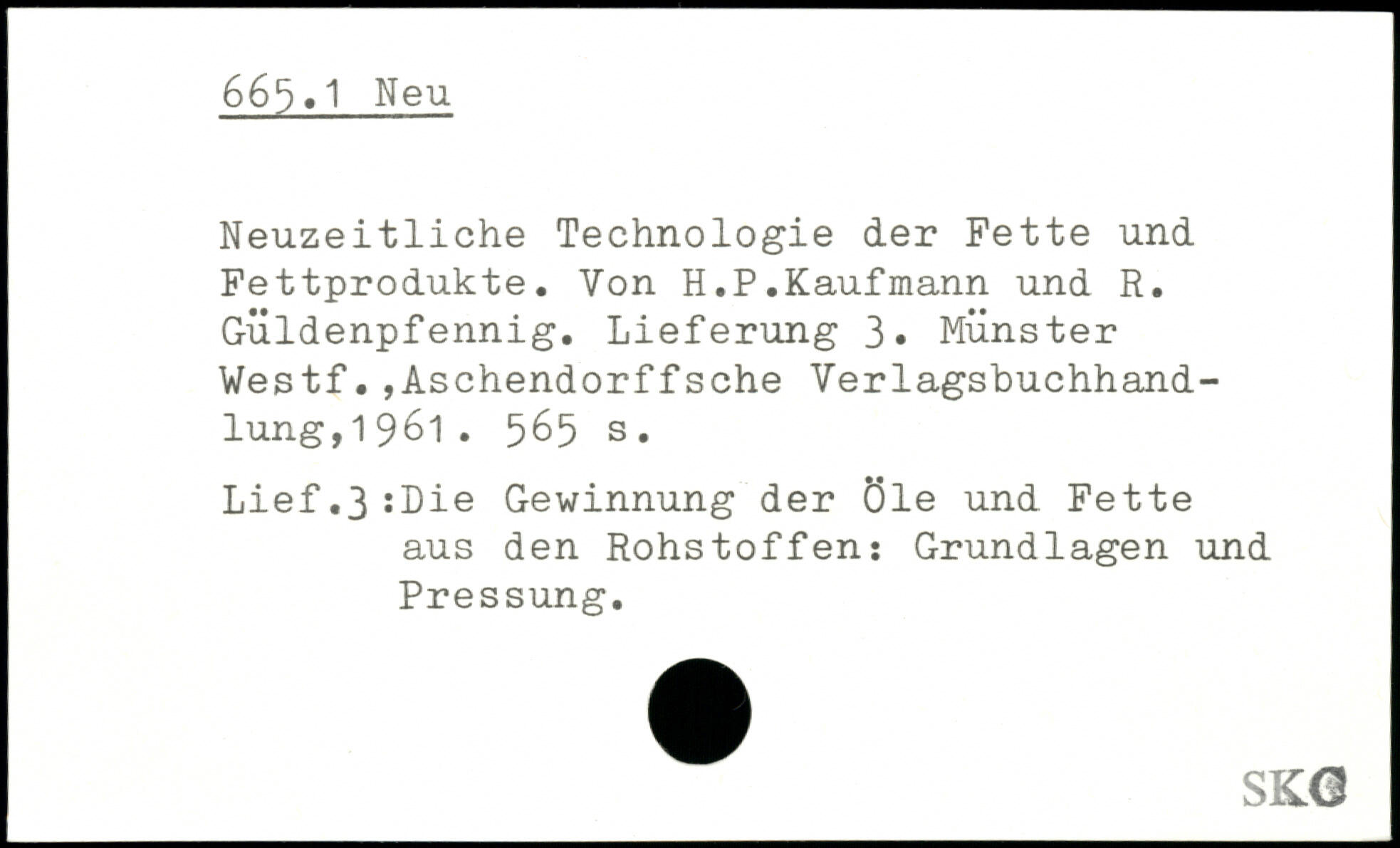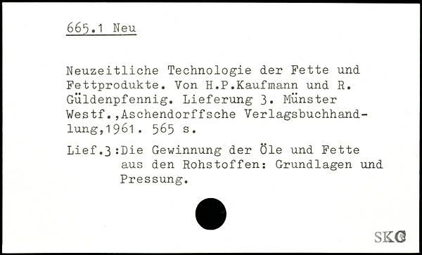 Neuzeitliche Technologie der Fette und Fettprodukte. Von H.P.Kaufmann und R. GÜldenpfennig. Lieferung 3. Münster Westf.,Aschendorffsehe Verlagsbuchhandlung,! 961.