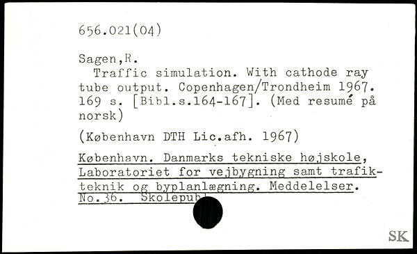 Traffic simulation. With cathode ray tube output. Copenhagen/