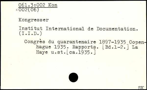 Institut International de Documentation. (I.I.D.) Congrès du quarantenaire 1897-1935^