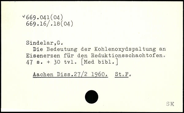 Sindelar,Ge Die Bedeutung der Kohlenoxydspaltung an Eisenerzen für den Reduktionsschachtofen