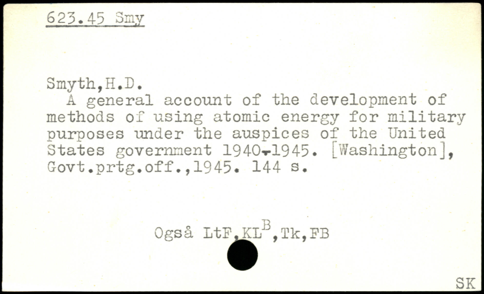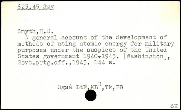 A general account of the development of methods of using atomic energy for military purposes under the auspices of the United States government 1940,r1945. [Washington], Govt.prtg.off.,1945.