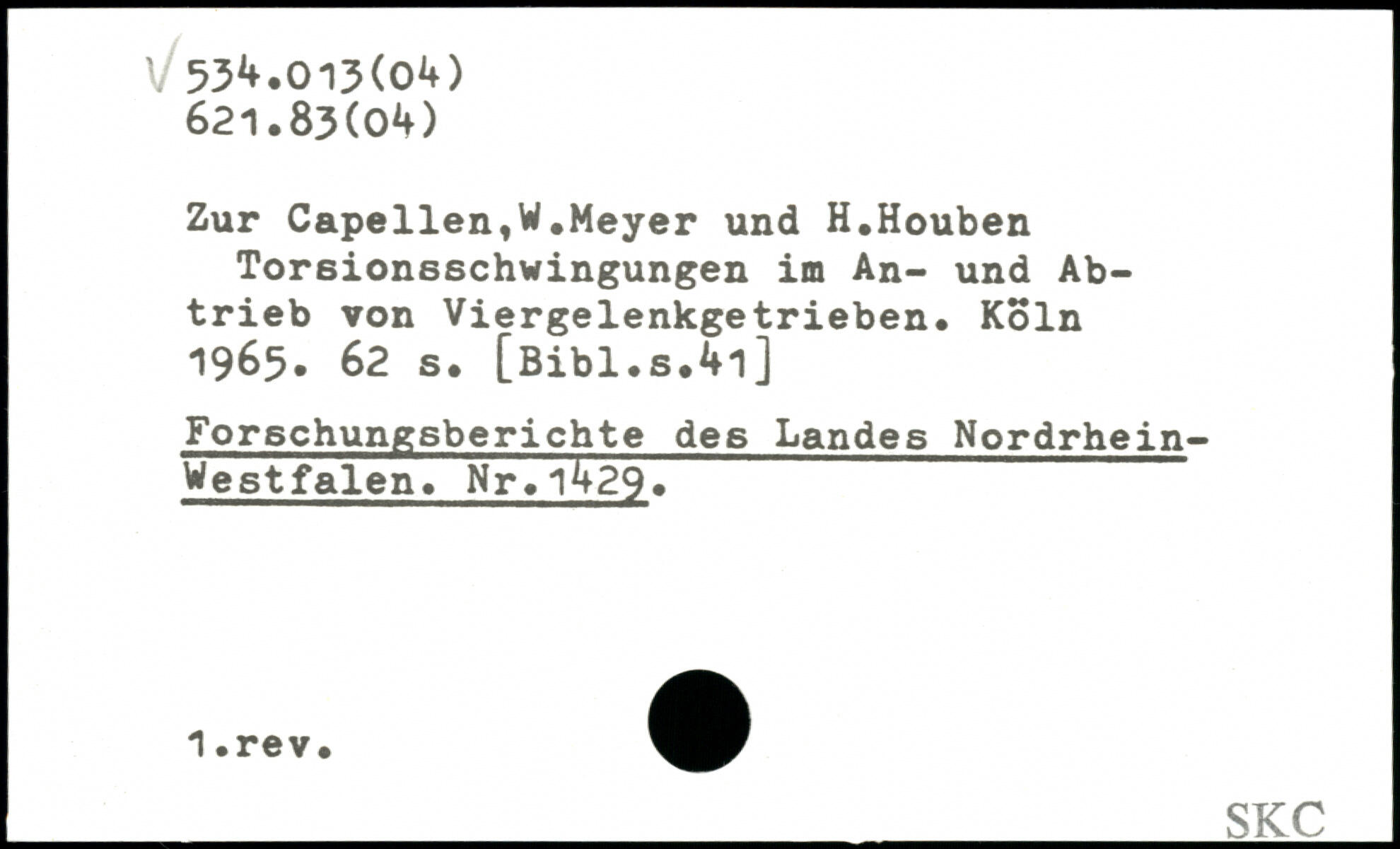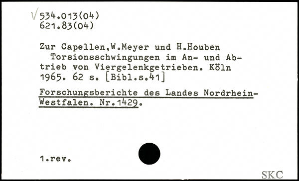 Zur Capellen,W.Meyer und H.Houben Torsionsschwingungen im An- und Abtrieb von Viergelenkgetrieben.