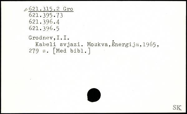 UDK: 621.315.2 Gro, 621.395.73, 621.396.4, 621.396.5
