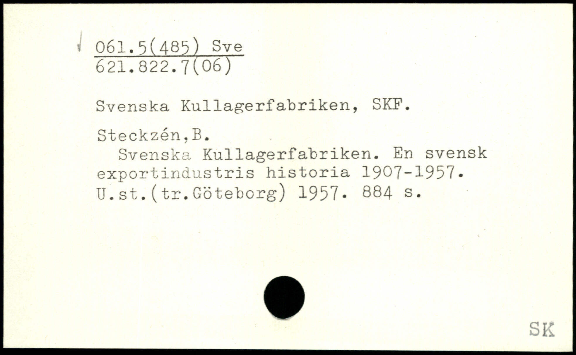 Steckzén.B. Svenska Kullagerfabriken. En svensk exportindustris historia 1907-1957. U.st.(tr.Göteborg) 1957.