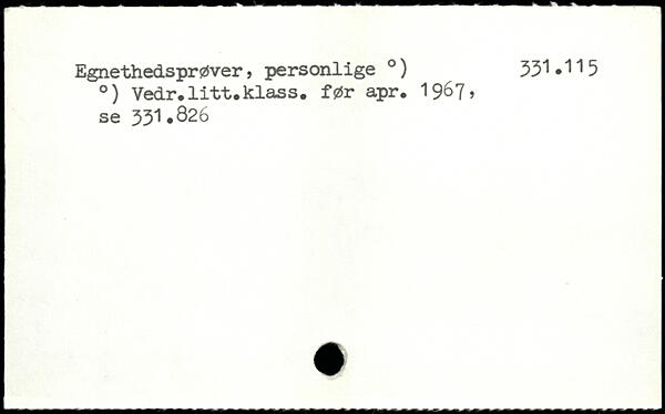 ■■ -■ iwmi m EgnethecLsprøver, personlige .) 331.115 .) Vedr.litt.klass. før apr, 19^7, se 331.826