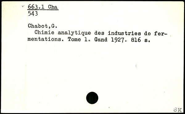 Chimie analytique des industries de fermentations. Tome L Gand 1927.