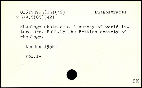 Rheology abstracts. A survey of world literature.