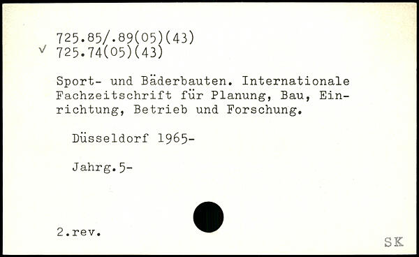 Sport- und Bäderbauten. Internationale Fachzeitschrift für Planung, Bau, Einrichtung, Betrieb und Forschung. Düsseldorf 1965- J ahrg.5-