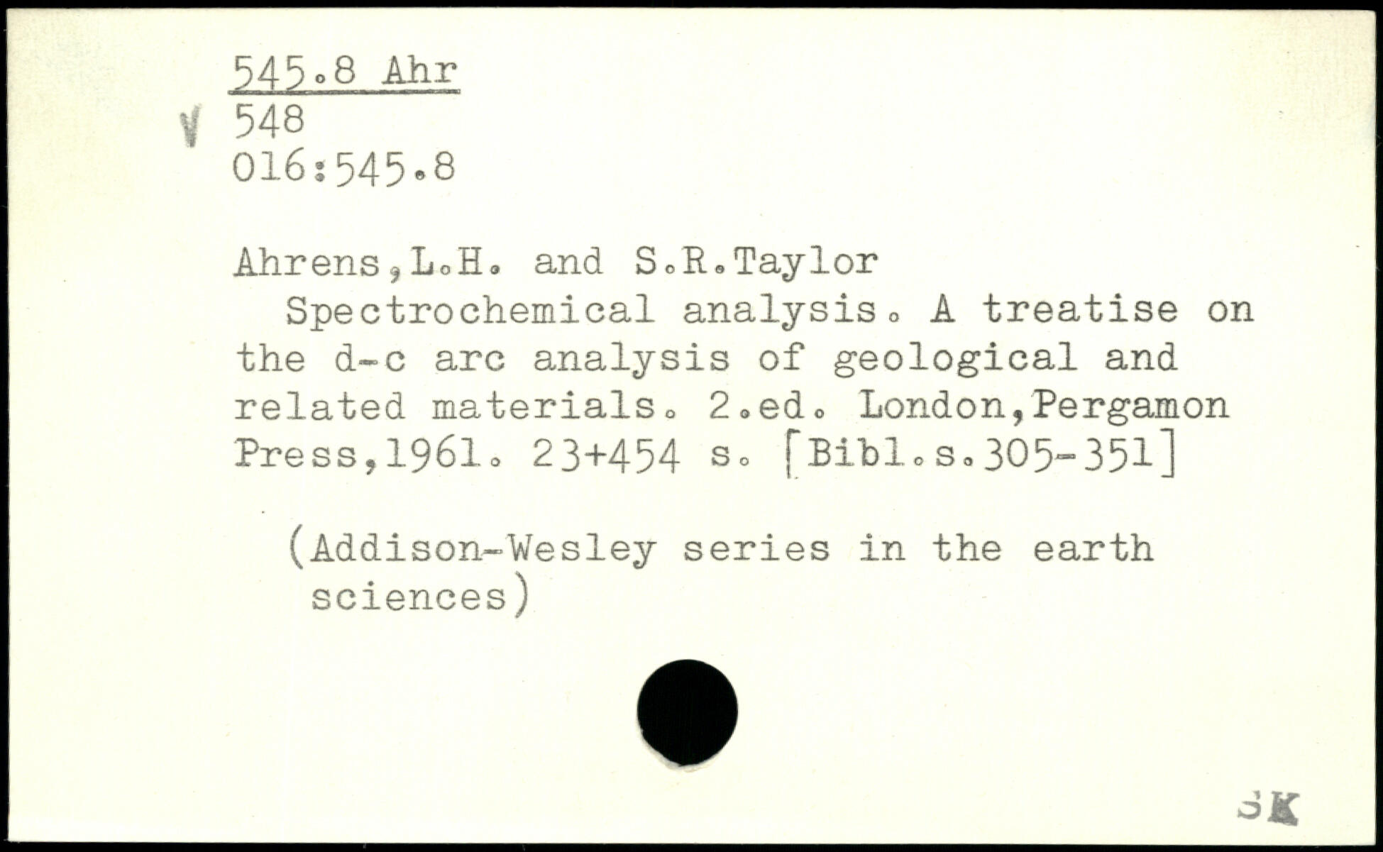 Ahrens?LoH. and SoR,Taylor Spectrochemical analysisn A treatise on the d-c arc analysis of geological and related materials