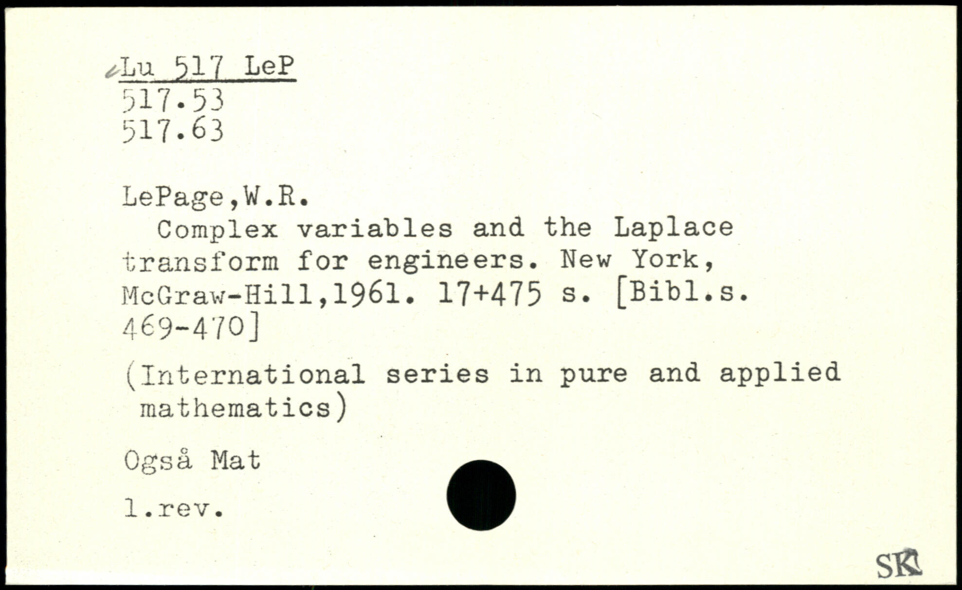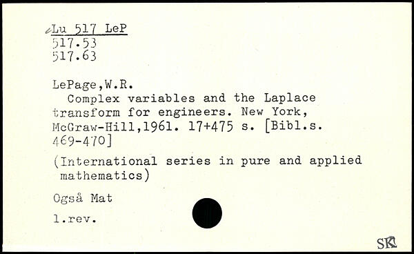 Complex variables and the Laplace transform for engineers.