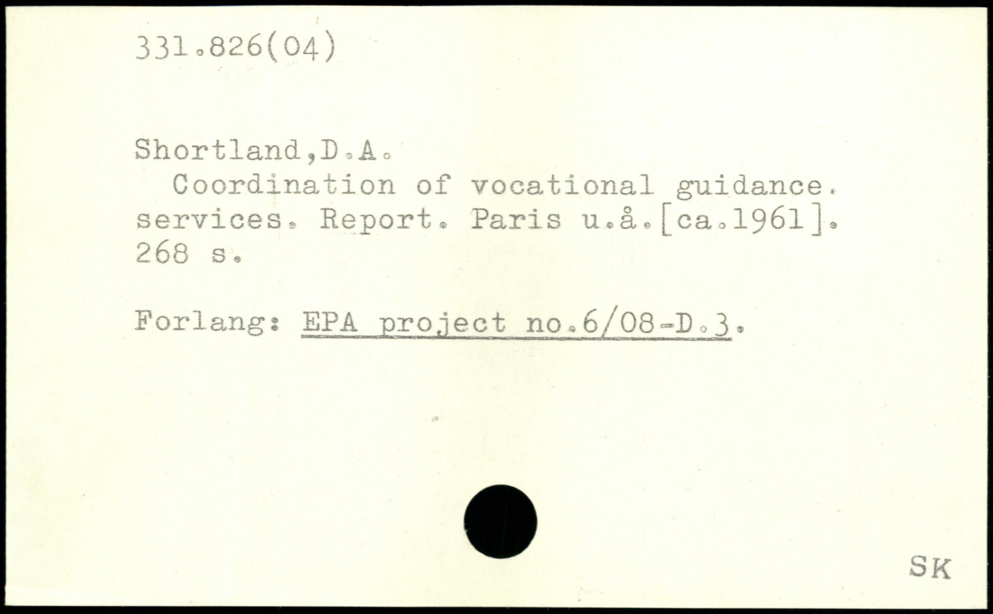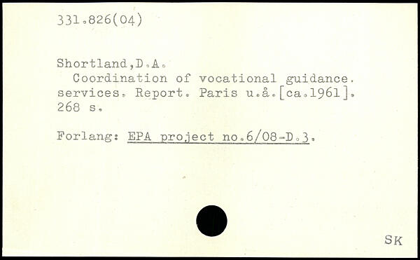 Coordination of vocational guidance, services. Report. Paris u.a.[ca.1961].