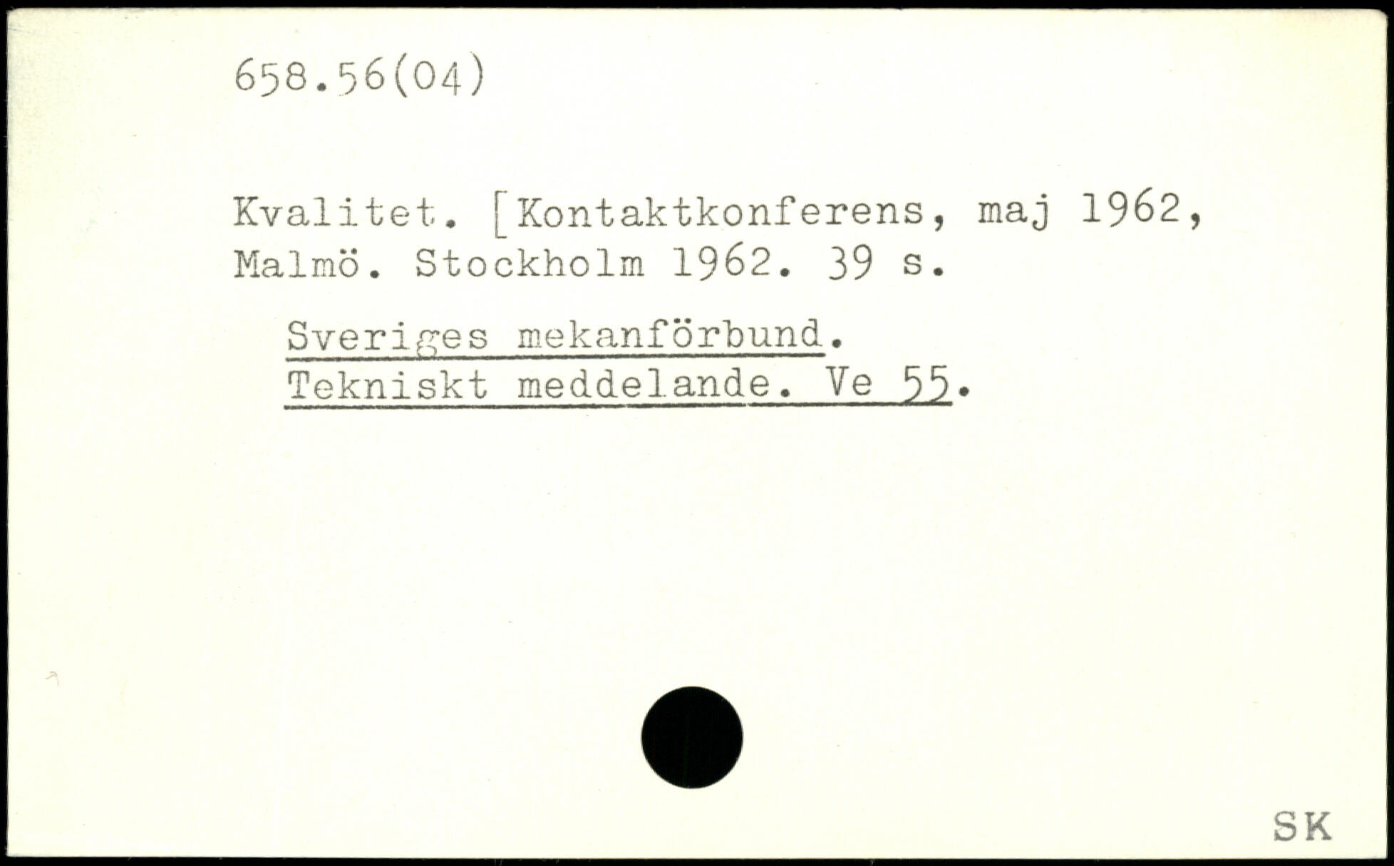 Kvalitet. [Kontaktkonferens, maj 1962, Malmö.