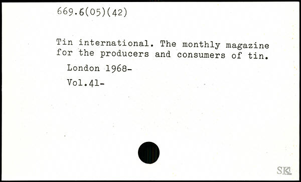 Tin international. The monthly magazine for the producers and consumers of tin.