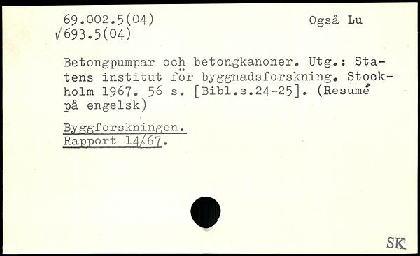 Betongpumpar och betongkanoner. Utg.: Statens institut för byggnadsforskning.