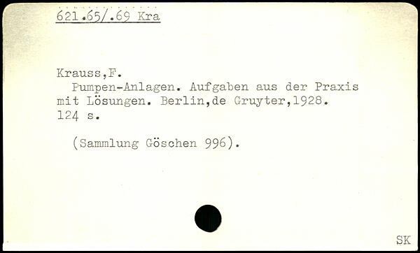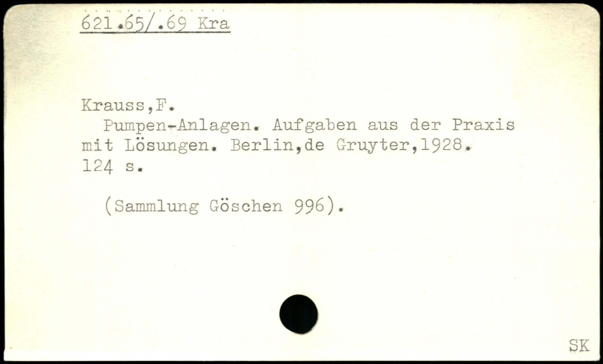 Pumpen-Anlagen.- Aufgaben aus der Praxis mit Lösungen. Berlin,de Gruyter,1928.