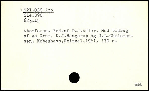 Atomfaren. RecLaf DeJoAdler. Med bidrag af Aa Grut9 NcJoHaagerup og J,L.Christen-sen, KøbenhavnPReitzelj1961.