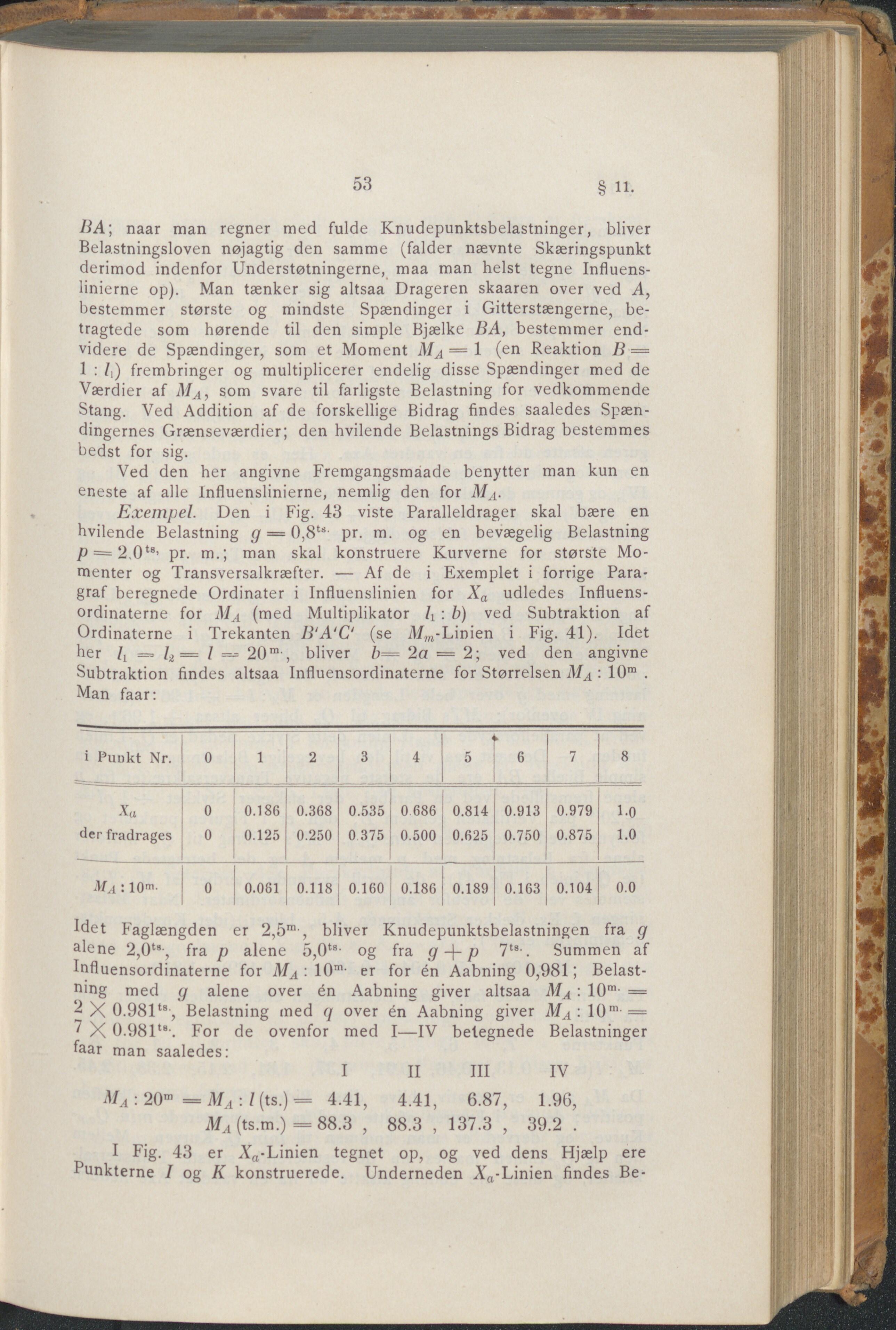 Influensordinaterne for MA : 10m- er for én Aabning 0,981; Belast-