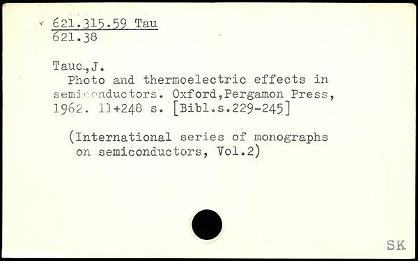 Taue., J. Photo and thermoelectric effects in semiconductors.