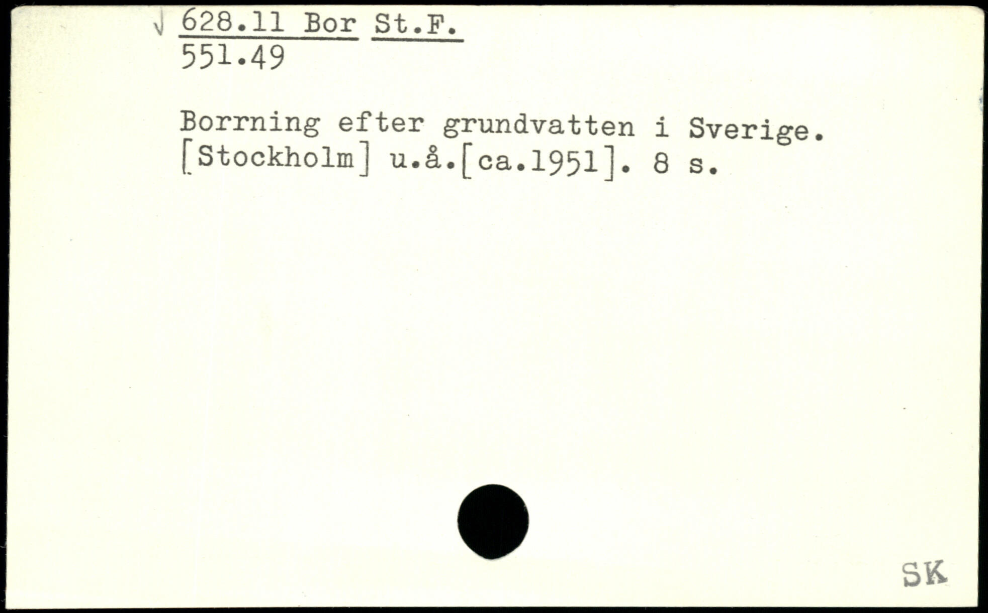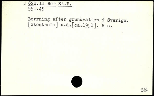 Borrning efter grundvatten i Sverige. [Stockholm] u.å.[ca.1951]