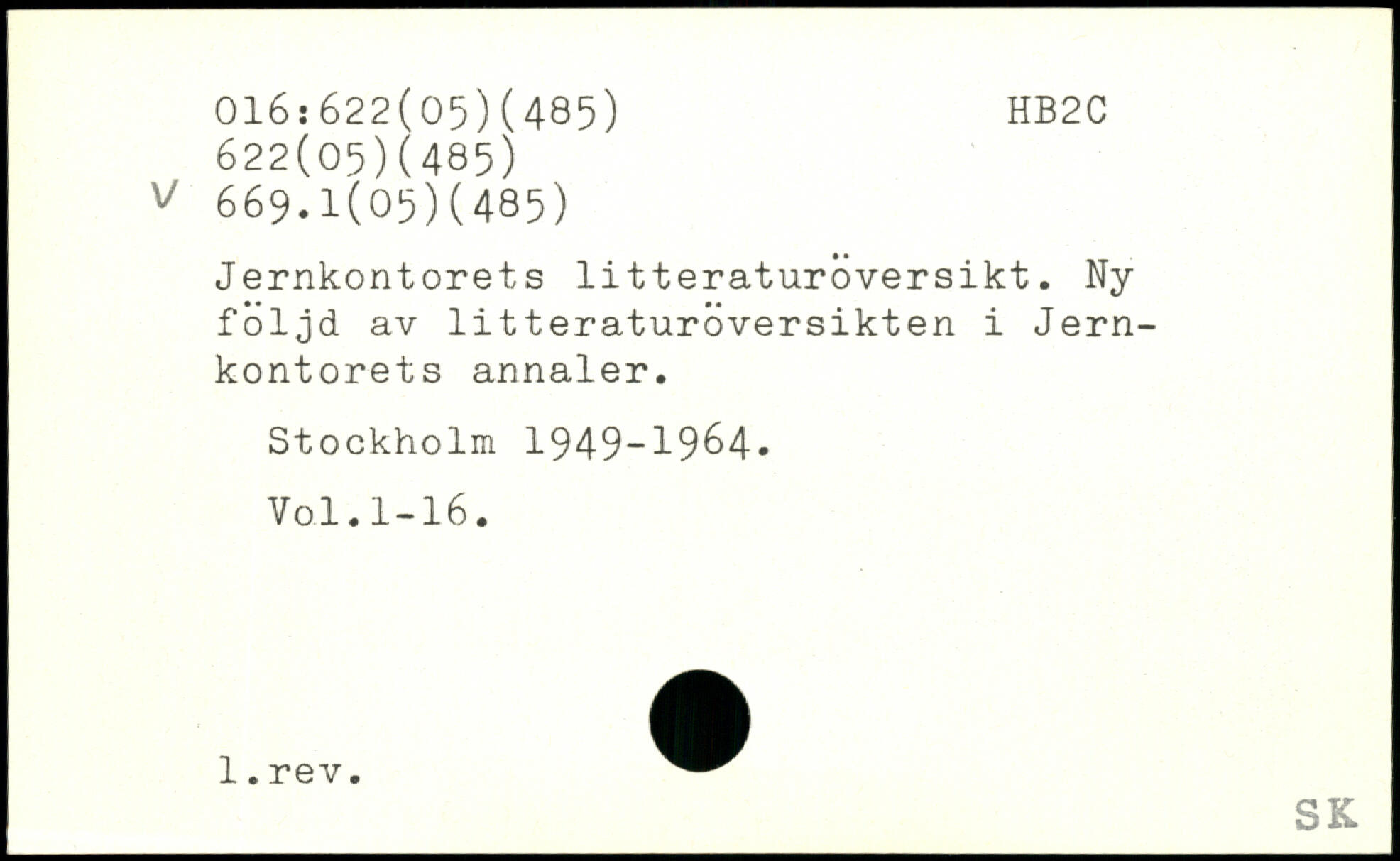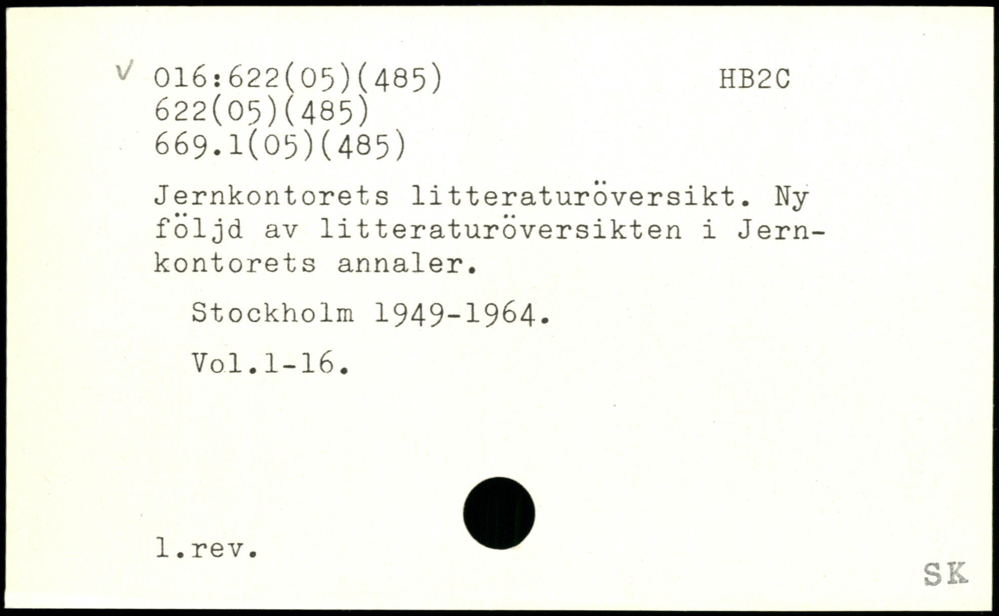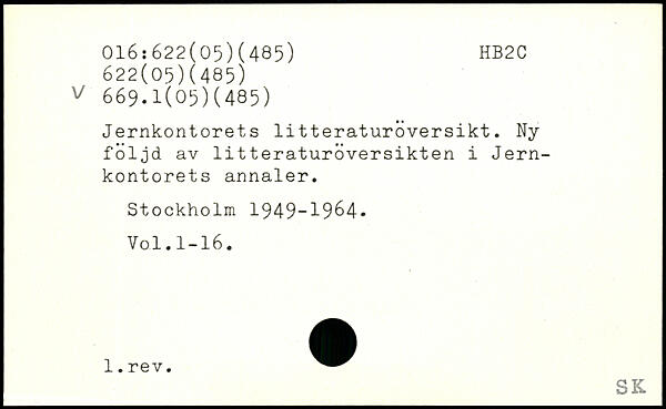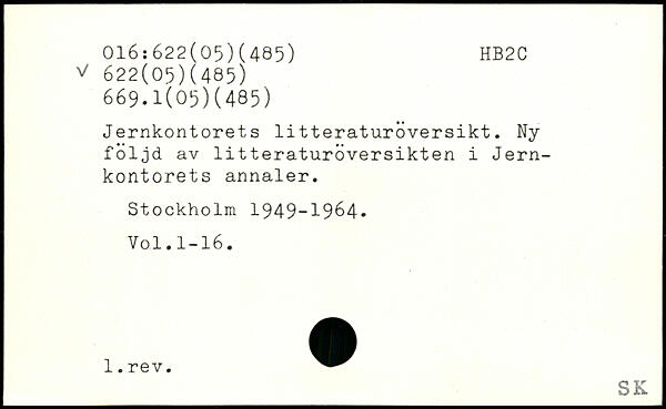 Jernkontorets litteraturöversikt. Ny följd av litteraturöversikten i Jernkontorets annaler.