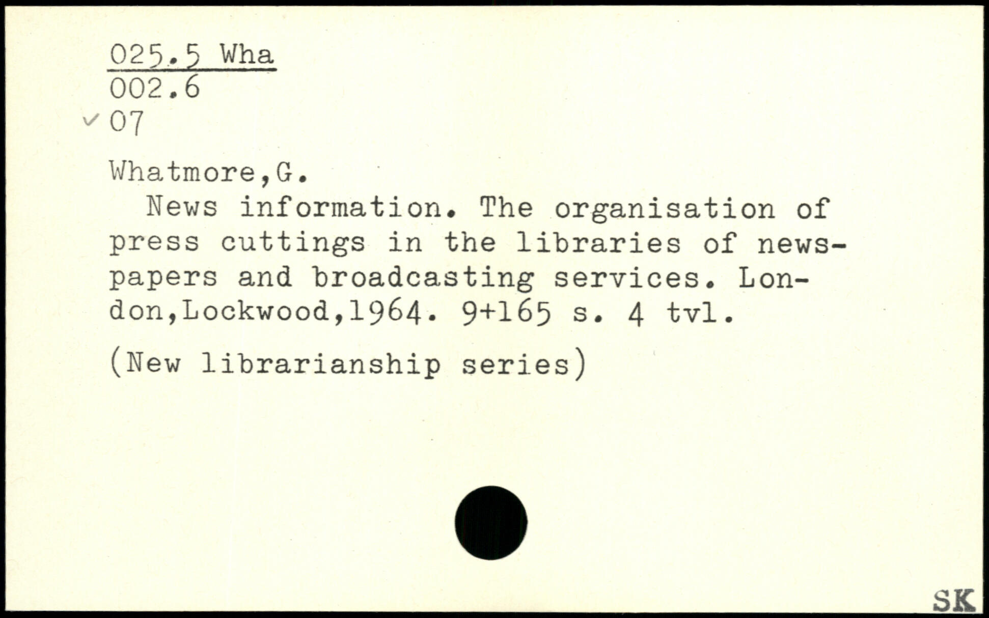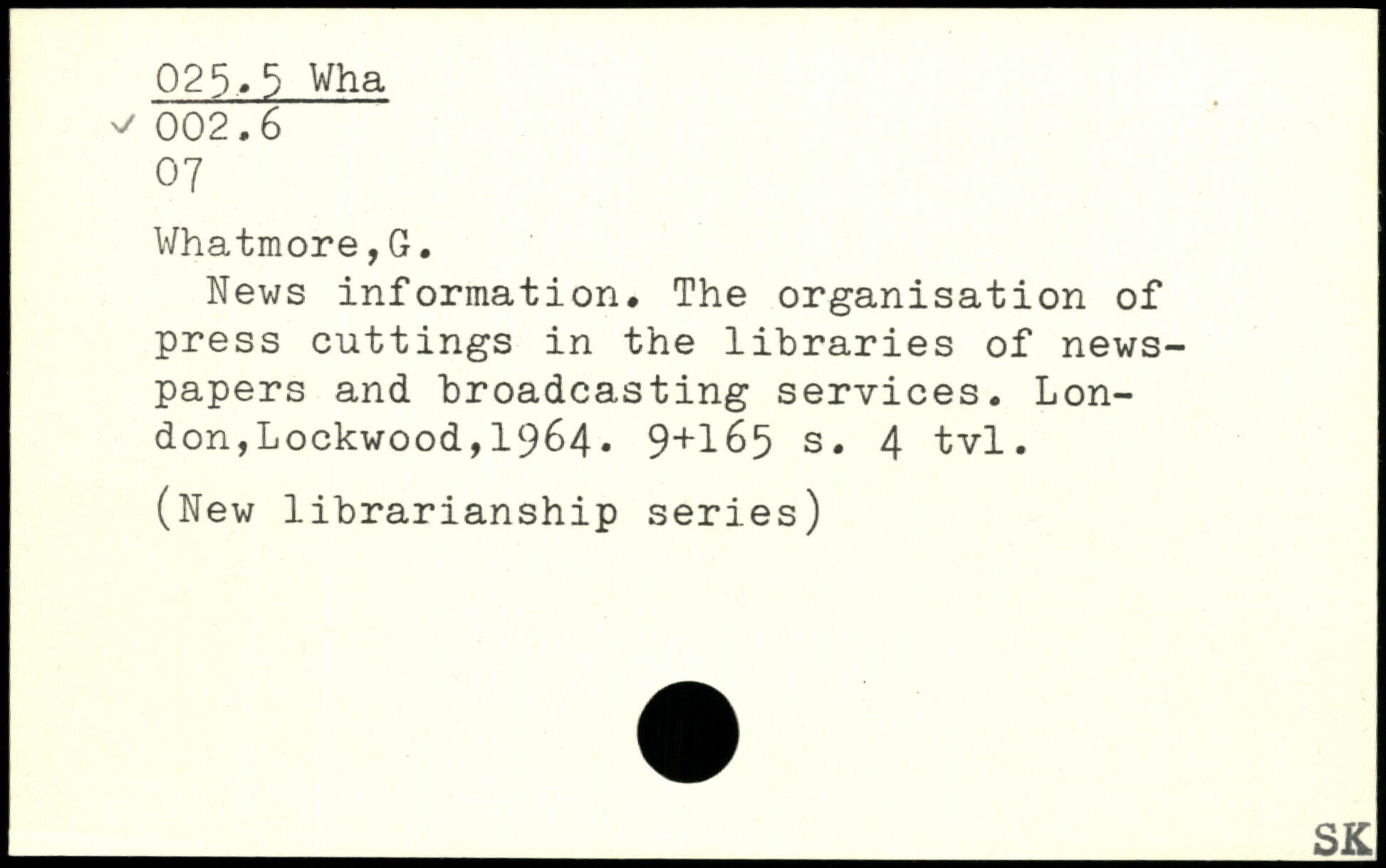 News information. The organisation of press cuttings in the libraries of newspapers and broadcasting services.