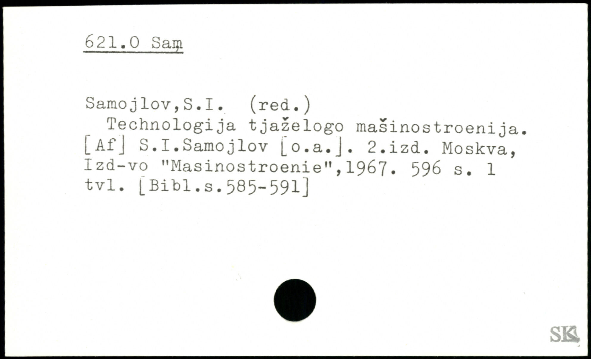 Technologija tjazelogo masinostroenija. [Af] S.I.Samojlov [o.a.J. 2.izd. Moskva, Izd-vo "MasinostroenieM,1967.