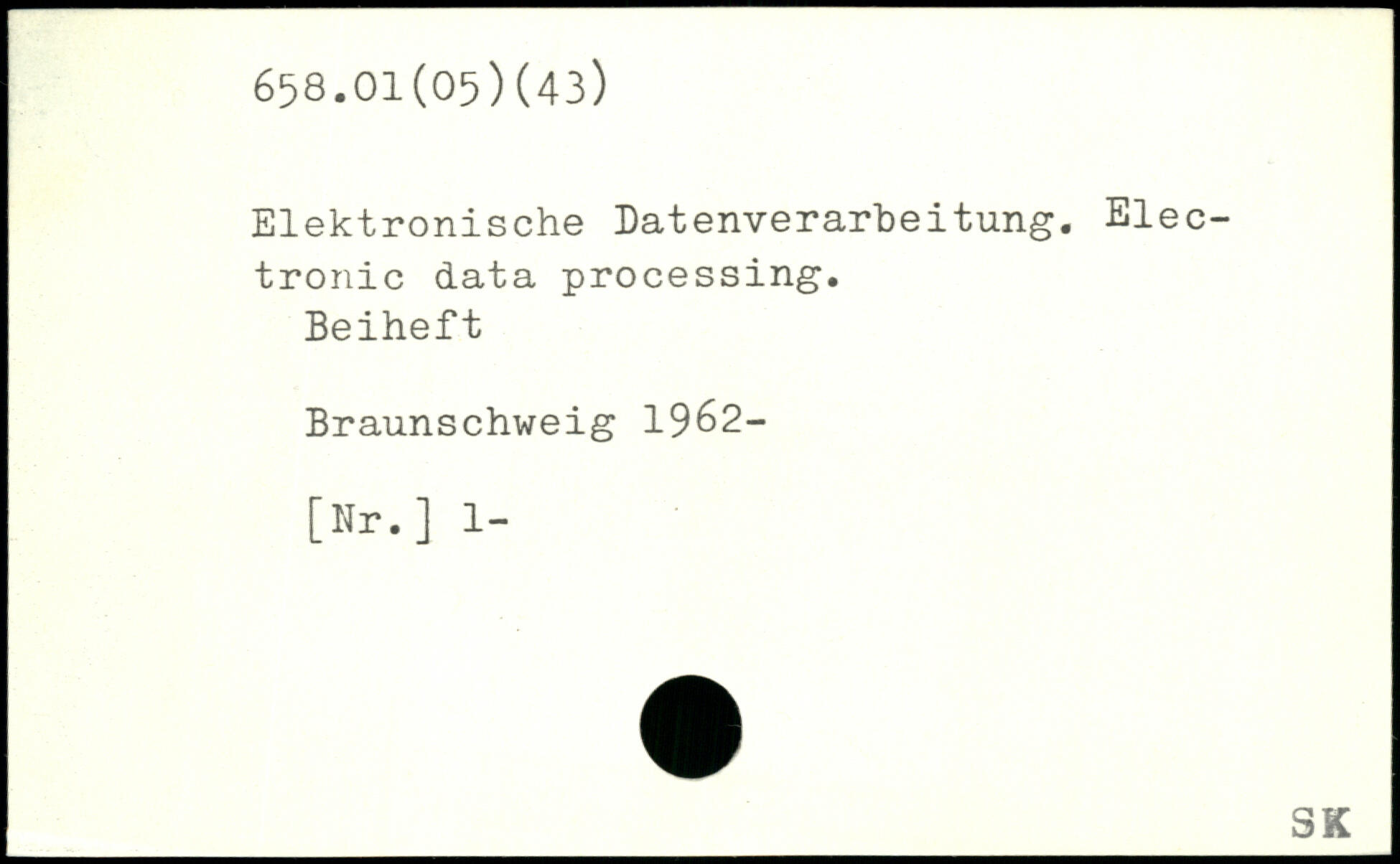 Elektronische Datenverarbeitung. Electronic data processing. Beiheft Braunschweig 1962- [Nr.] 1-