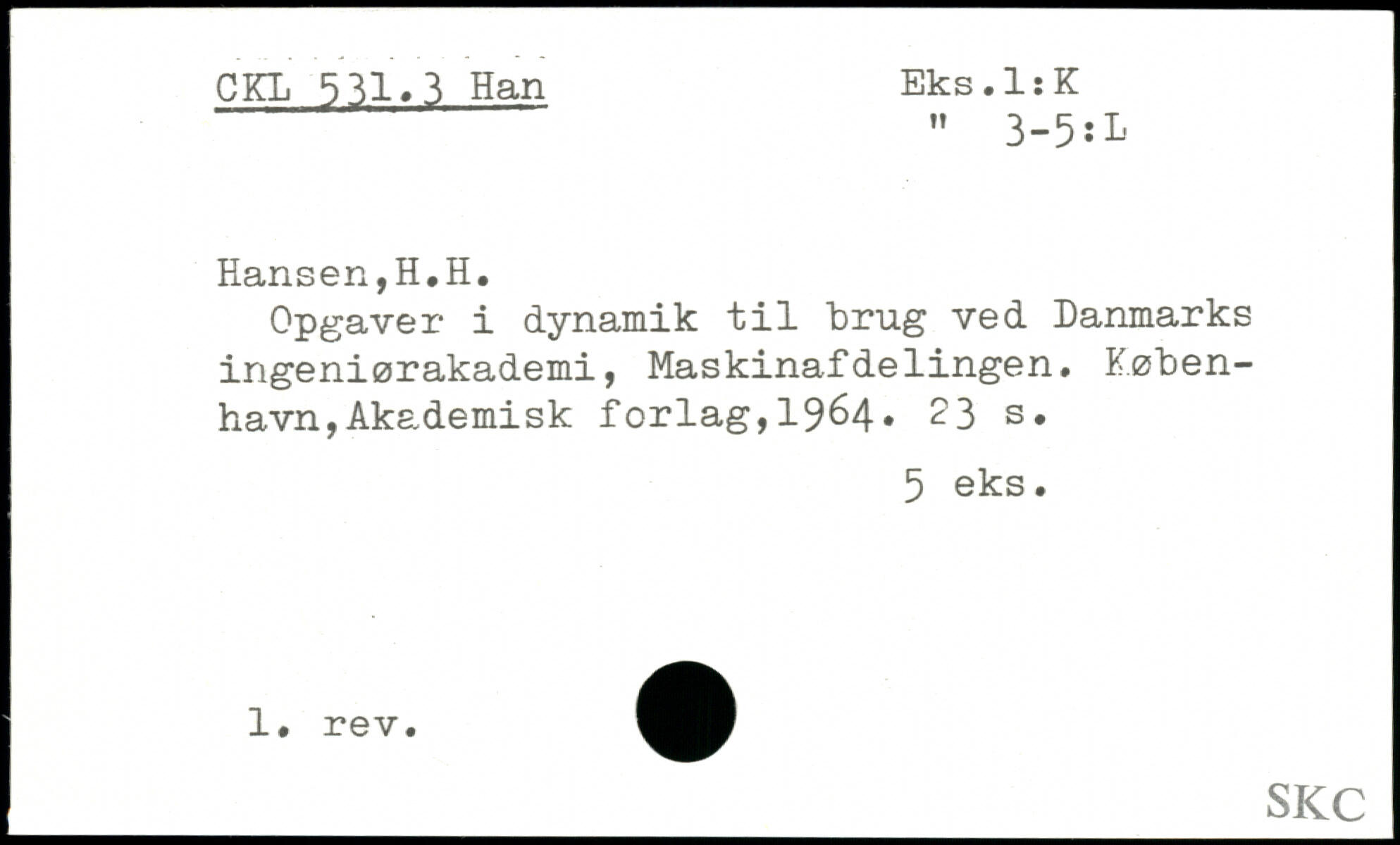 Opgaver i dynamik til brug ved Danmarks ingeniørakademi, Maskinafdelingen.