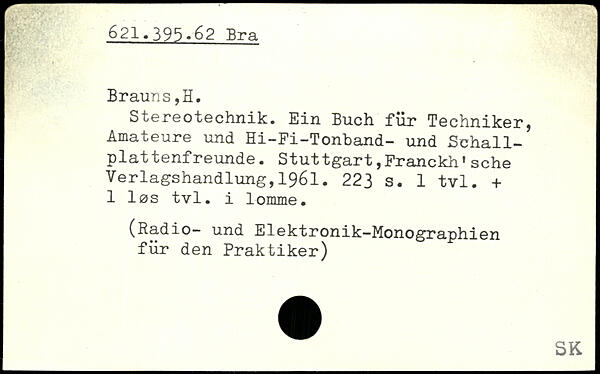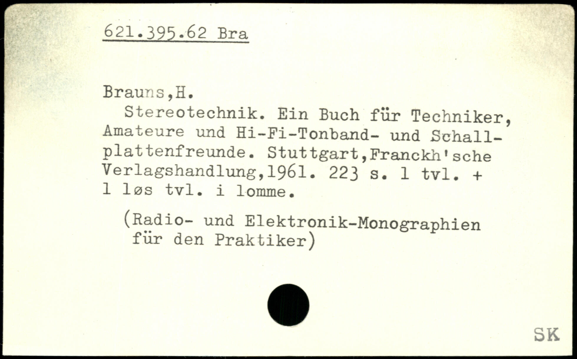Stereotechnik. Ein Buch für Techniker, Amateure und Hi-Fi-Tonband- und Schall-plat tenfreunde■ Stut tgart,Franckh. sehe Verlagshandlung,1961.