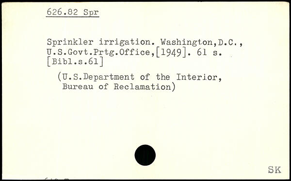 Sprinkler irrigation. Washington,]).C. , U.S.Govt.Prtg.Office,[1949].