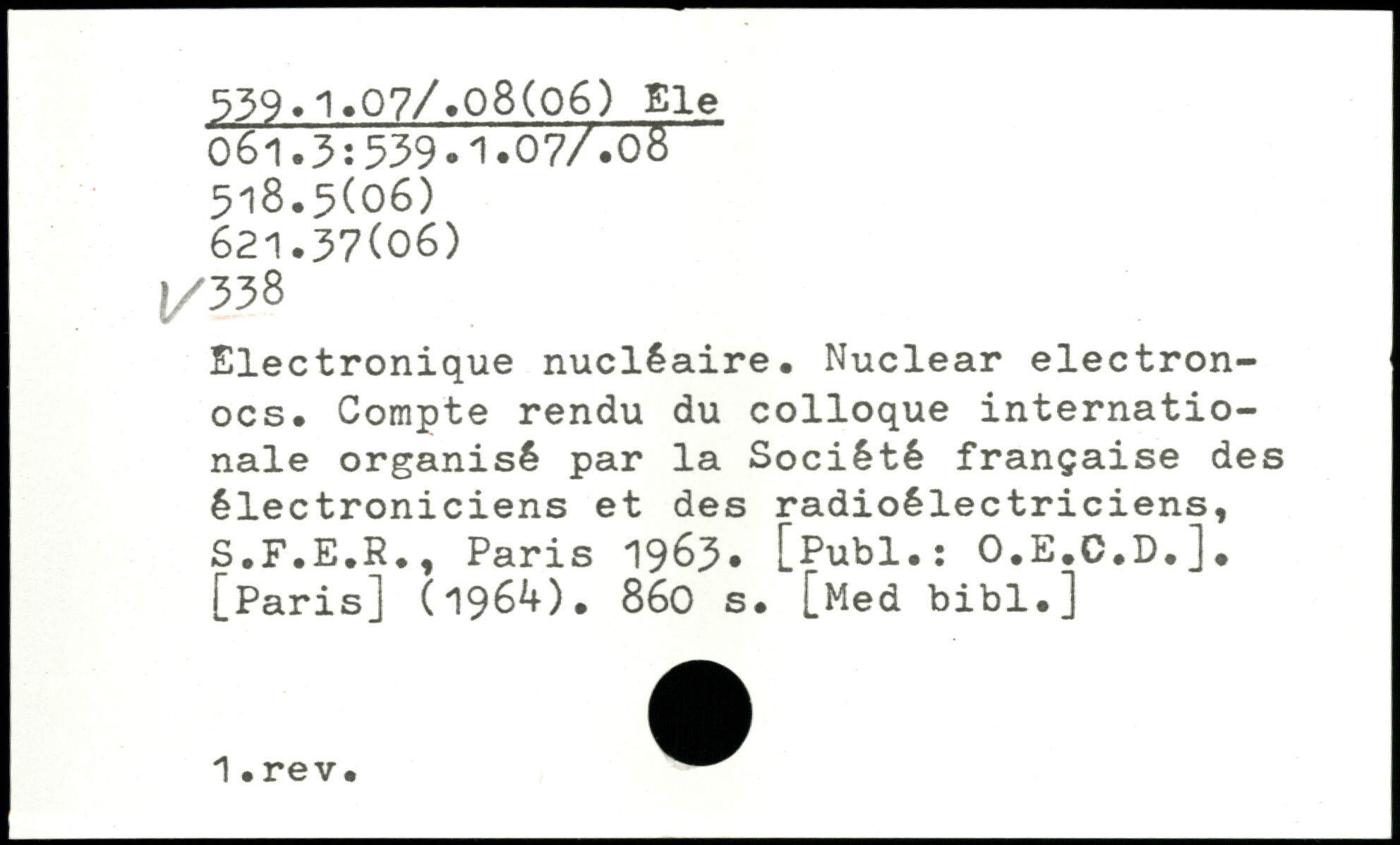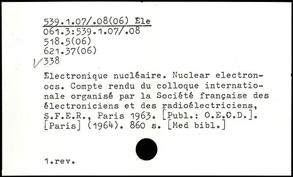 Electronique nucléaire. Nuclear electron-ocs. Compte rendu du colloque internationale organisé par la Société française des électroniciens et des radioélectriciens, S.F.E.R.