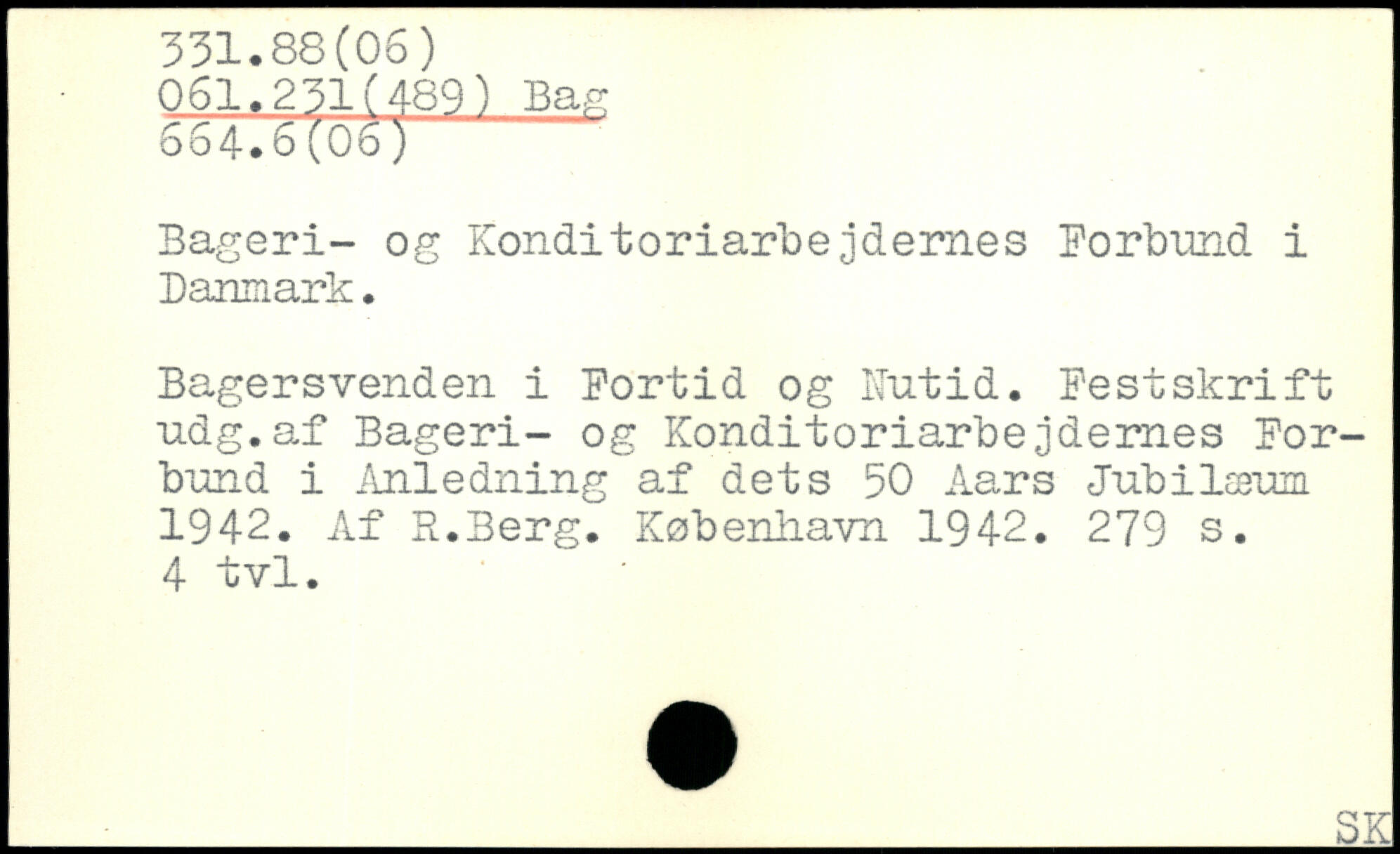 Bageri- og Konditoriarbejdernes Forbund i Danmark. Bagersvenden i Fortid og Nutid. Festskrift udg.af Bageri- og Konditoriarbejdernes Forbund i Anledning af dets 50 Aars Jubilæum 1942. Af R.Berg.