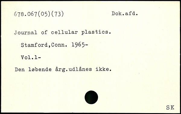 Journal of cellular plastics. Stamford,Conn. 19&5“