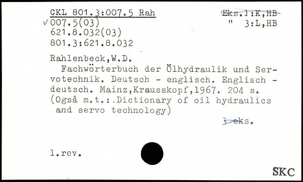 Fachwörterbuch der Ölhydraulik und Ser-votechnik. Deutsch - englisch. Englisch -deutsch.