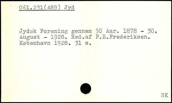 Jydsk Forening gennem 30 Aar. 1878 - 30. August - 1928. Red.af P.E.Frederiksen.