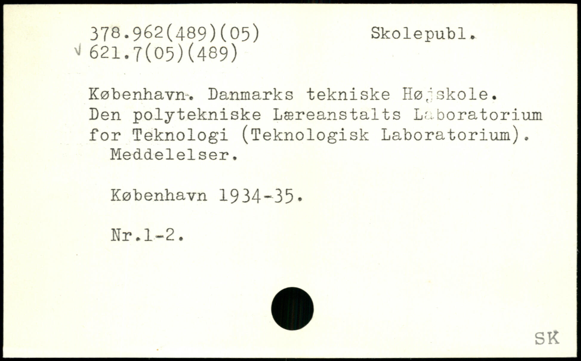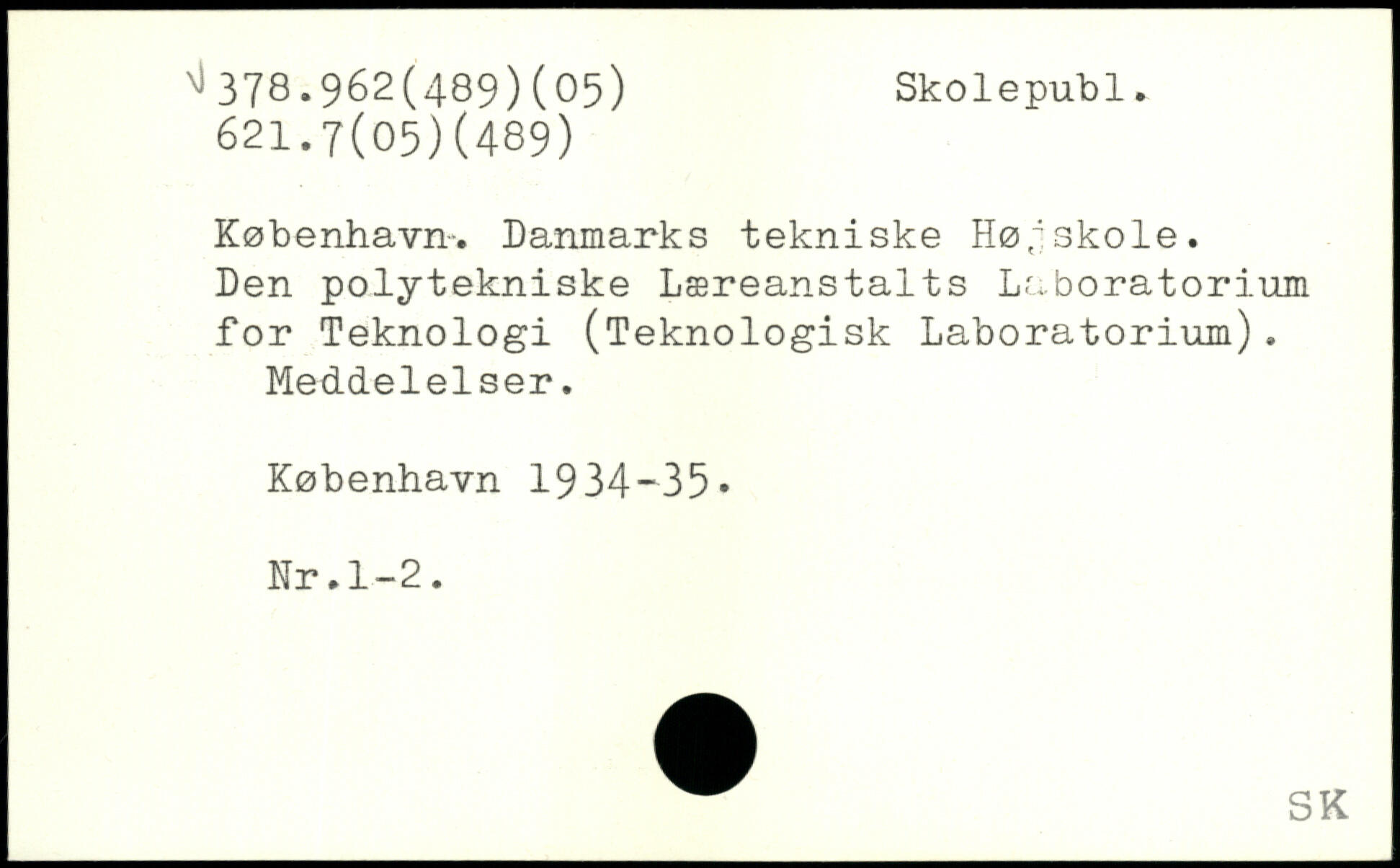 København-. Danmarks tekniske Højskole. Den polytekniske Læreanstalts Laboratorium for Teknologi (Teknologisk Laboratorium). Meddelelser.