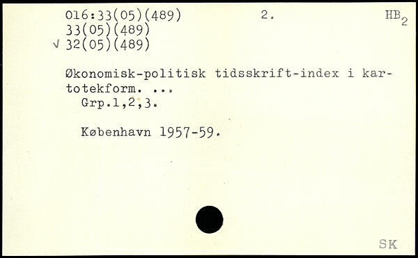 Økonomisk-politisk tidsskrift-index i kar-totekform. ... Grp.1,2,3.