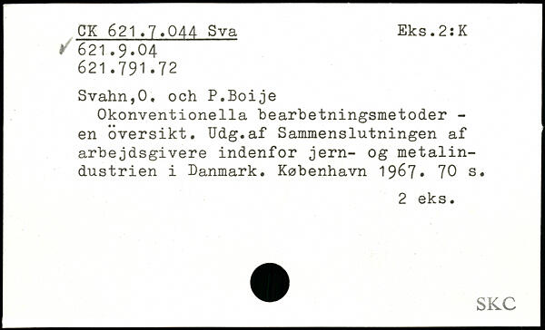 Okonventionella bearbetningsmetoder -en översikt. Udg.af Sammenslutningen af arbejdsgivere indenfor jern- og metalindustrien i Danmark. København 19^7.