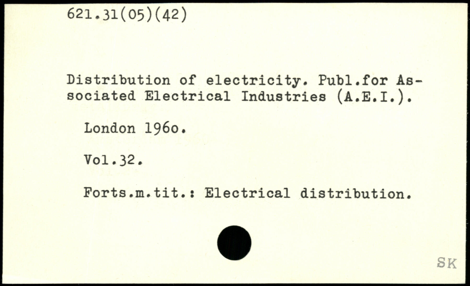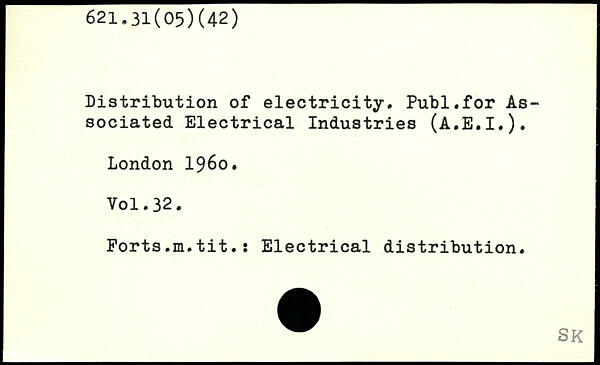 Distribution of electricity. Publ.for Associated Electrical Industries