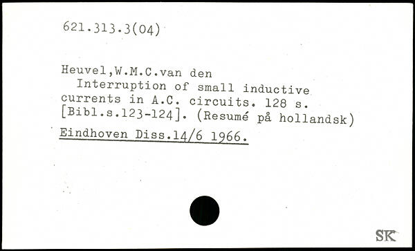 Heuvel,W.M.C.van den Interruption of small inductive currents in A.C. circuits.