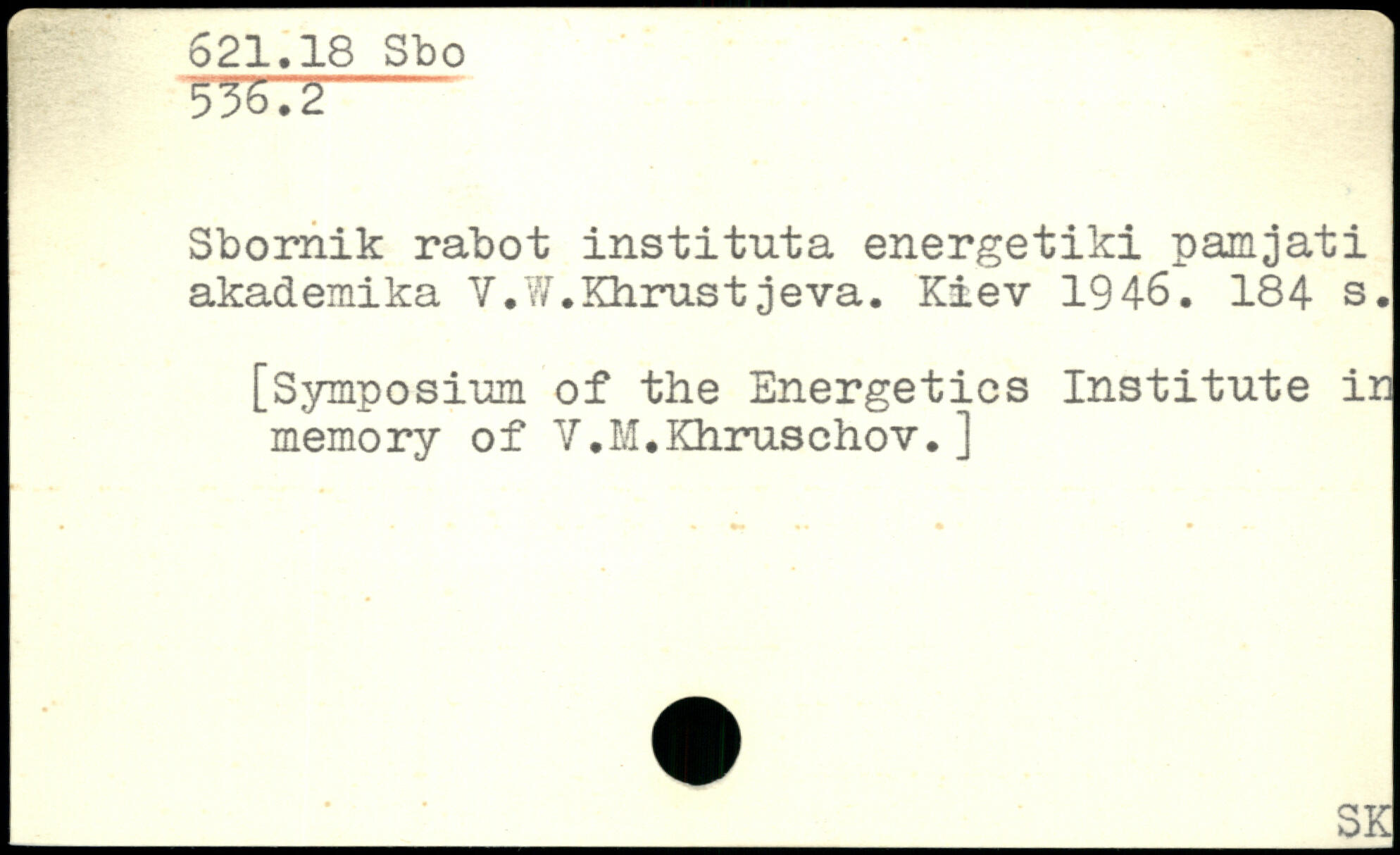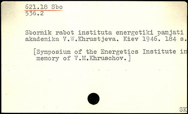 Sbornik rabot instituta energetiki pamjati akademika Y.W.Khrustjeva. Kiev 1946.