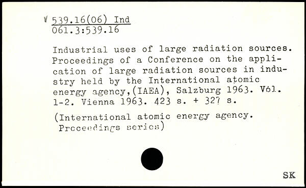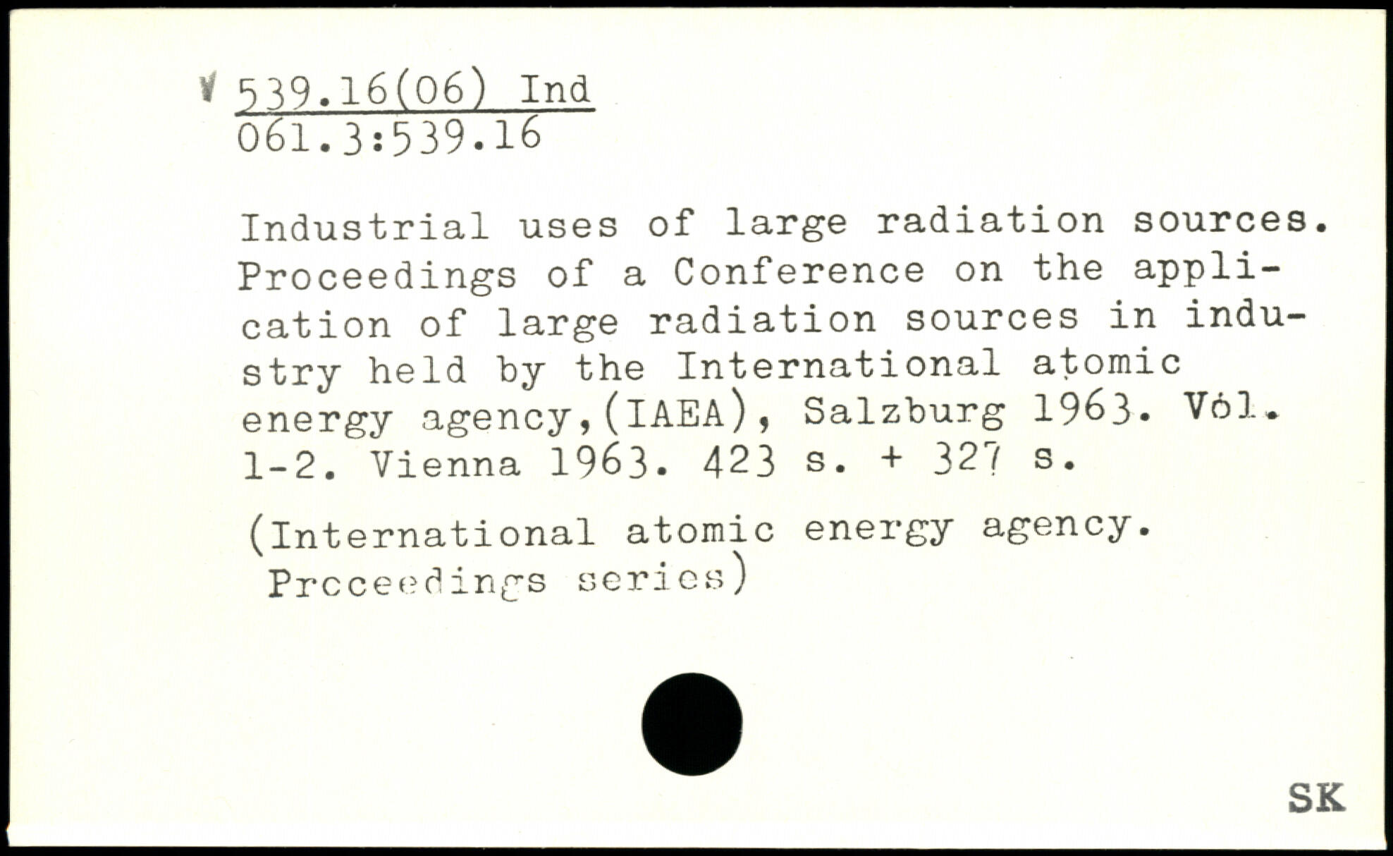 Industrial uses of large radiation sources. Proceedings of a Conference on the application of large radiation sources in industry held hy the International atomic energy agency,(IAEA), Salzburg 1963. Vol. 1-2. Vienna 1963.